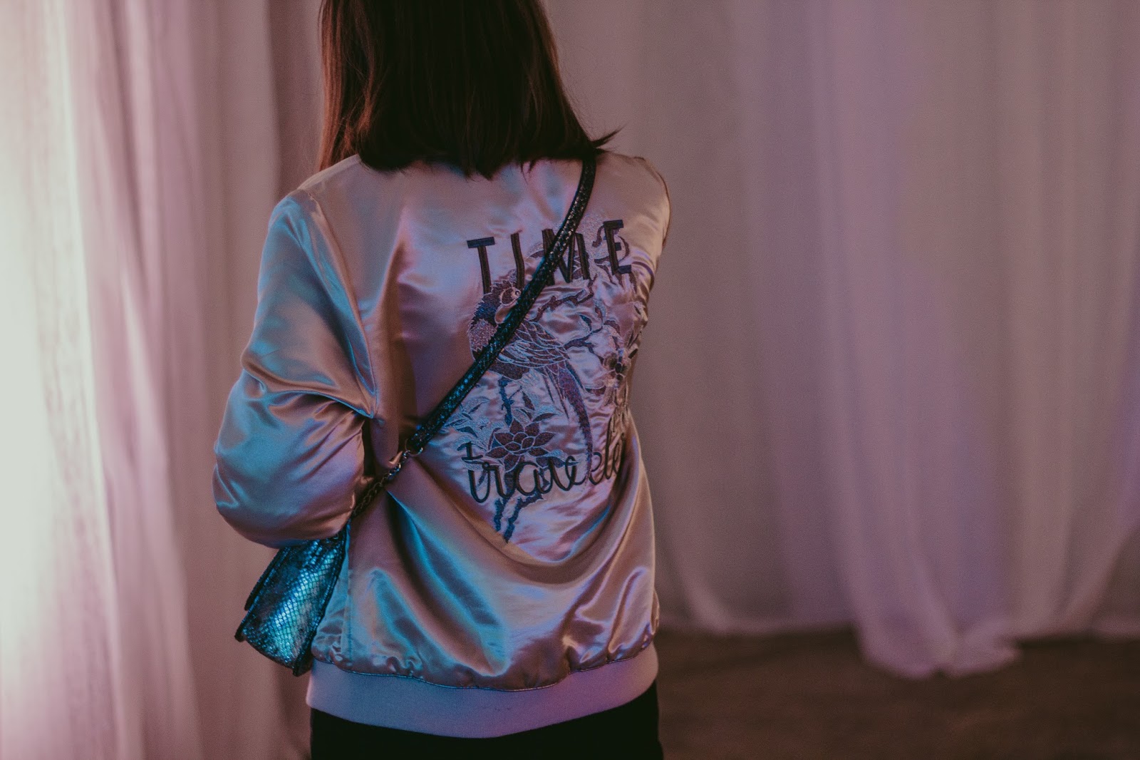 Quanto ao look, não há muito a dizer... Apenas que, aproveitei a desculpa de ter estado mais frio, para tirar do armário da mãe este bomber acetinado com borbados que eu adoro! Ela é que não pareceu adorar muito a ideia de ser "assaltada"! De resto, optei por cores bem neutras, como a minha camisola da SheIn, que vos mostrei aqui.