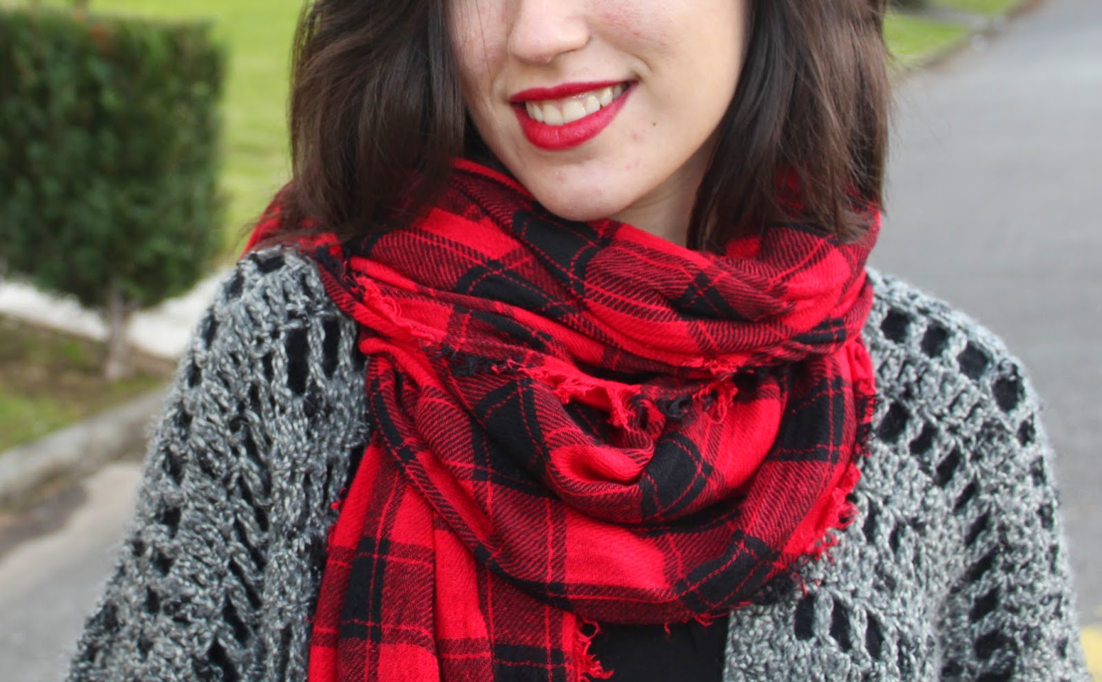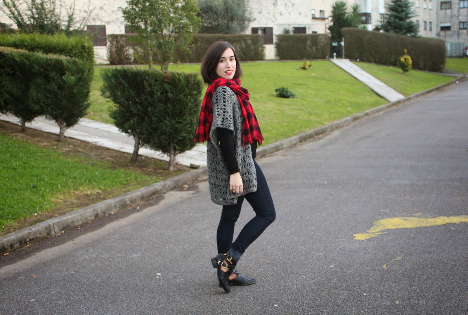 From the moment she gave it to me, I can't get enough of it. I always try to wear it in different ways and colors, this time in a (almost) black look. I chose some details in red, like the scarf and the lipstick.