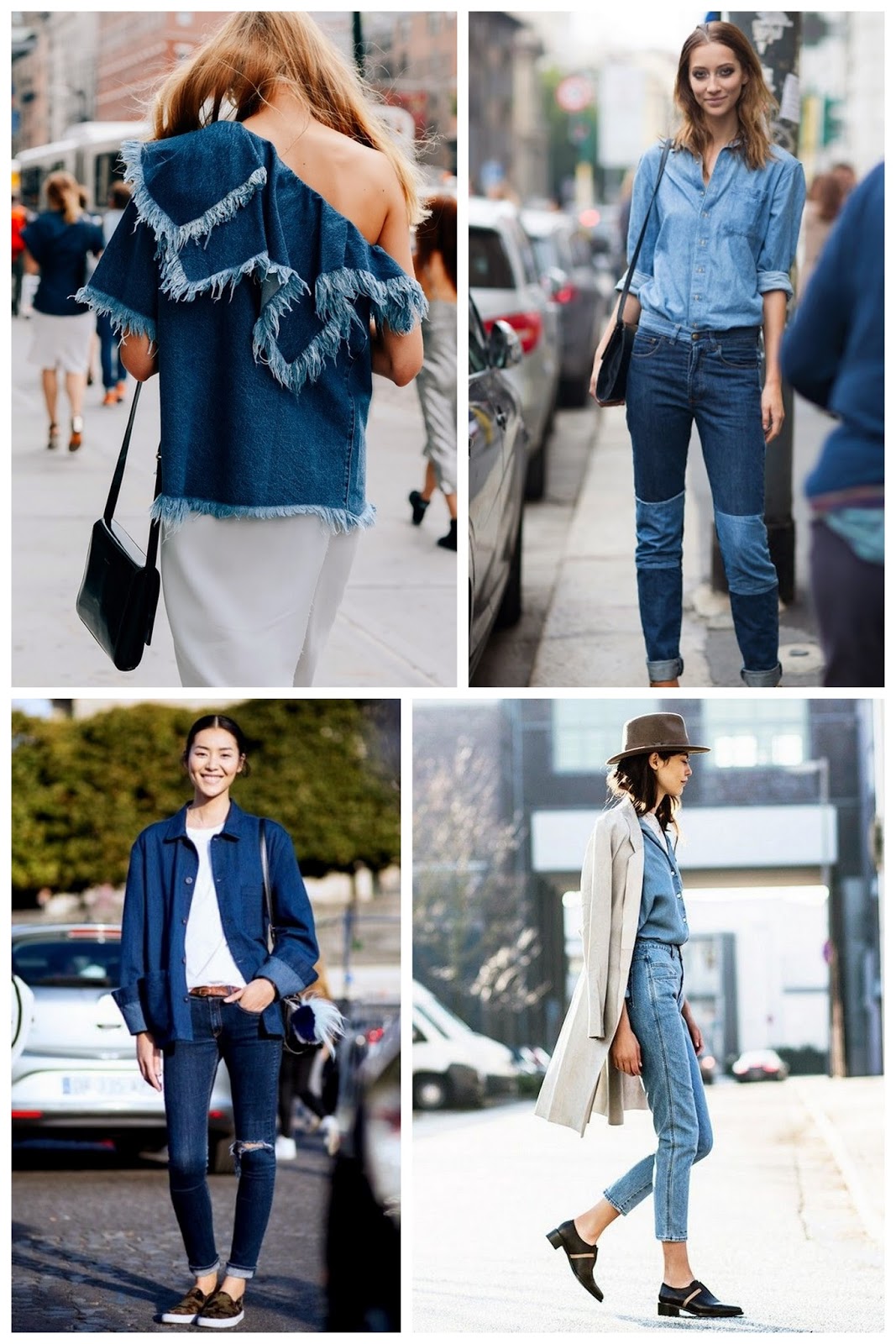 Até há bem pouco tempo, o total denim era algo que não me seduzia e que jamais pensaria usar. Porém, para meu espanto, no decorrer das últimas semanas da moda, o street style encheu-se de ganga, principalmente em looks totais!