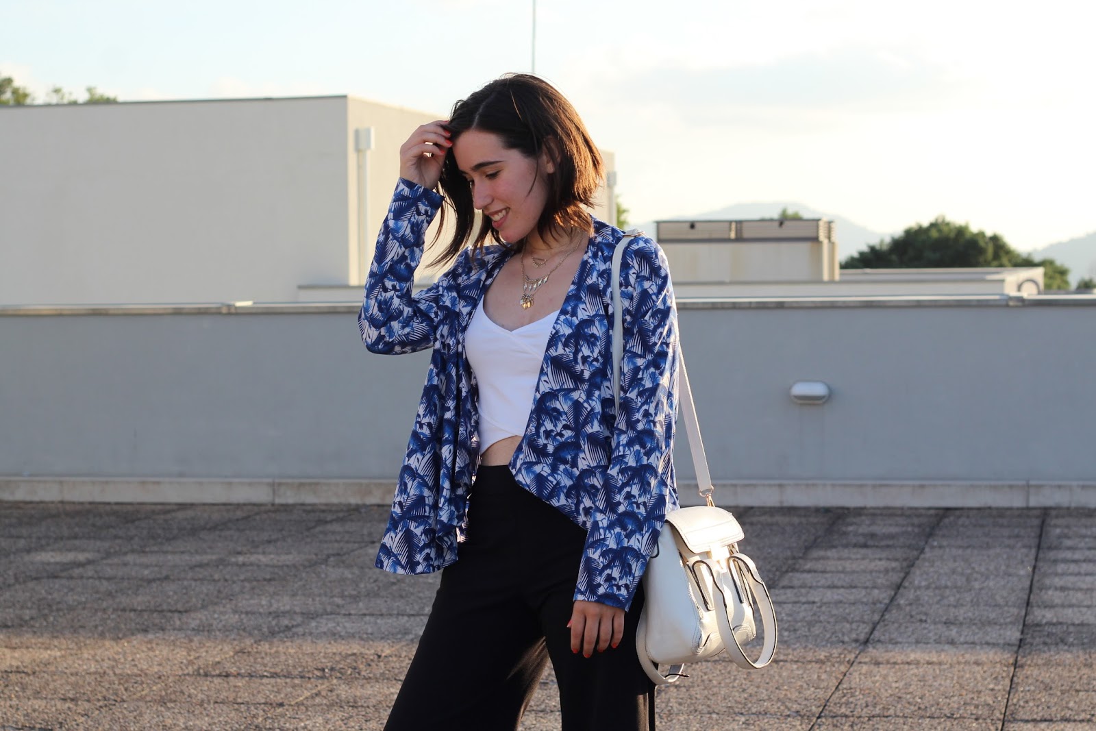 O kimono é das peças que mais devo usar este Verão; não só adoro o azul e o padrão, como também, é fresco e divertido de conjugar. Tirei do armário da mãe e não páro de reinventar novos looks com ele! Outra coisa de que também não me canso é dos acessórios em dourado. E do black&white, claro!