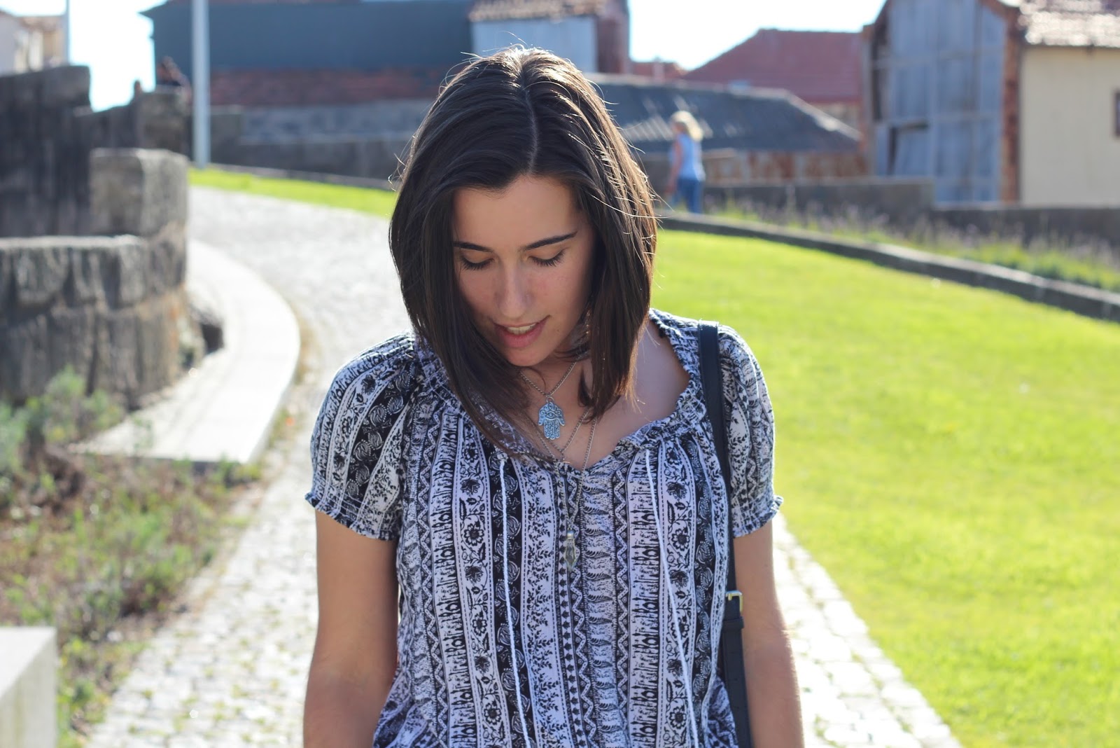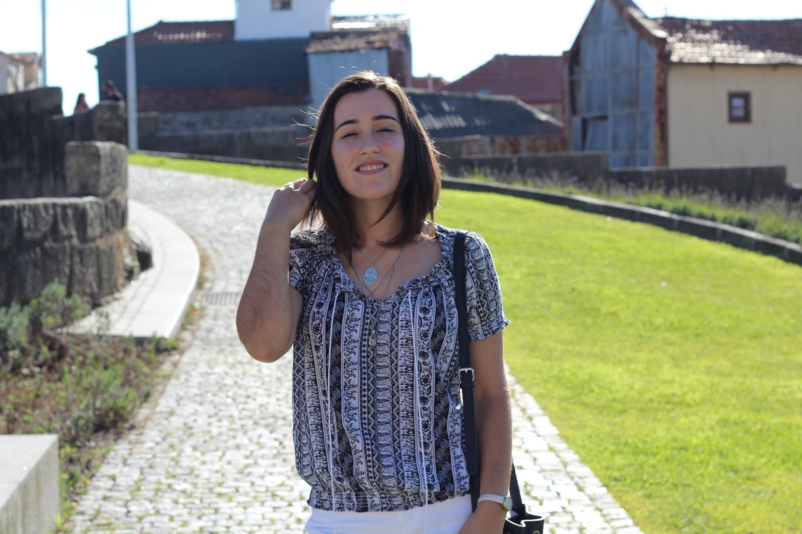Melhor do que looks a preto e branco, só se for mesmo o padrão da blusa! Se, por um lado, é uma peça que passa bem despercebida, por outro, tem tudo aquilo que eu adoro (e o que me faz vesti-la repetidamente): as minhas duas cores favoritas, o padrão aztec e, ainda, o detalhe do cordão. É ou não é adorável? hihi
