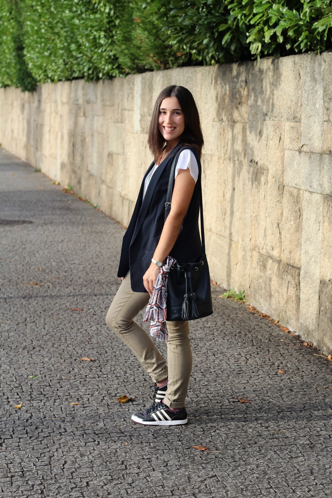 Bem, o sporty chic invadiu o meu moodboard este Verão, com os ténis e as malhas a aparecerem em tudo o que era street style. Ao que parece o Outono vai pelo mesmo caminho, visto que, só este mês, já usei mais vezes as minhas Adidas do que o ano passado inteiro! Chamo só a vossa atenção para o meu novíssimo colete, um verdadeiro achado na loja e uma verdadeira novidade no meu armário. O que acham deste conjunto?