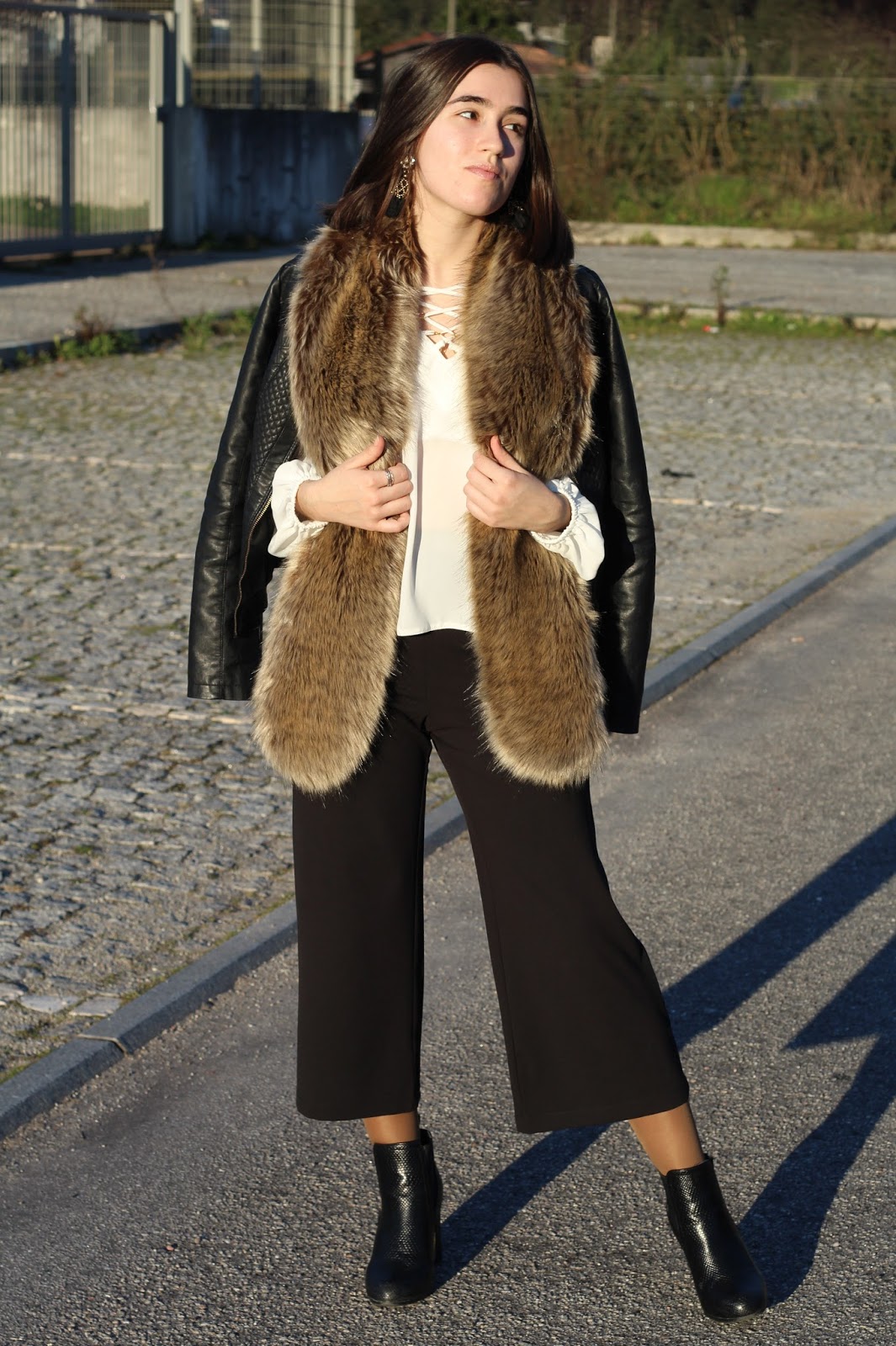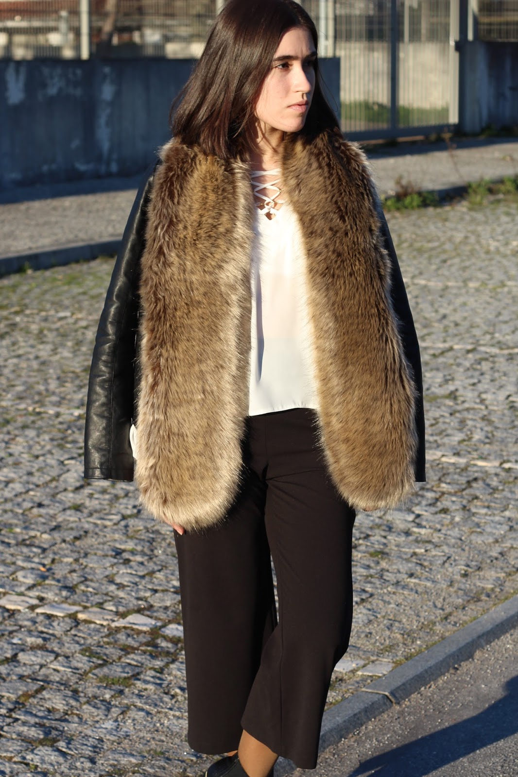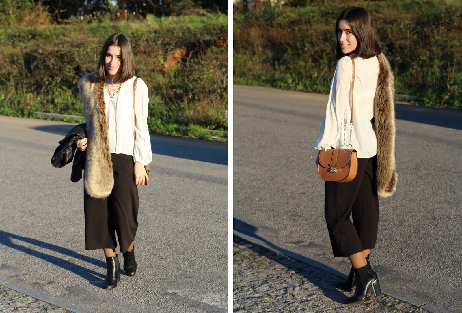Hello! Felizmente, antes de ficar de cama durante os últimos dois dias, consegui fotografar este look, no qual uso as culottes que eu mesma improvisei, como mostro neste post. Ainda bem que tive esta iniciativa, pois agora tenho a certeza que darei uso a esta nova peça, conseguida de uma forma super económica. Mas este look não mostra apenas uma só tendência, existem outras presentes, embora não seja habitual - "far from the usual" - combinar tantas tendências de uma só vez. A tendência das blusas lace-up continua bem presente no meu armário, assim como, acabo de me render, por completo, às estolas, sendo o meu mais recente acessório favorito. O que acharam destas novas entradas no meu armário?